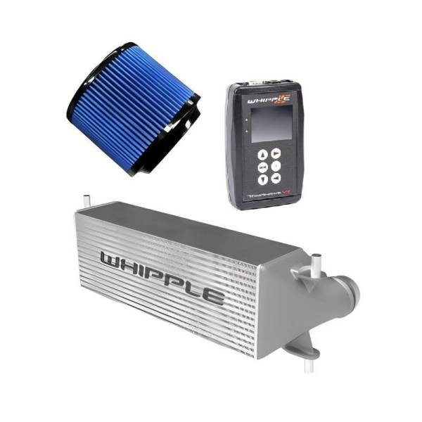 The Whipple stage 1 systems couples the Whipple Mega Cooler, high flow air filter and industry leading custom calibration to make up to an amazing 90* foot pounds of torque and 50* horsepower over stock. Even better, from 2000rpm, the systems produces significantly more torque giving more power under the curve for incredible throttle response. The calibration further enhances shift points to better utilize the increased torque, resulting in a much better overall driving experience, while also giving you the ability to change the tire and axle size to fix vehicle issues related to aftermarket tire/wheel changes (max 5.10 gear ratio, 39" tire).