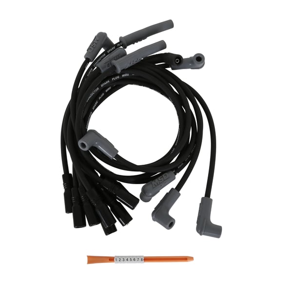 Engineered from the inside out, the 8.5 offers everything you have ever wanted in a wire; incredibly low resistance without electronic interference! In a single 12 inch length of Super Conductor Wire there is only 40 - 50 ohms of resistance! That is the lowest resistance of any helically wound wire. To accomplish this, we use a copper alloy conductor due to it's great voltage carrying capabilities. The low resistance results in less loss in spark energy so more reaches the spark plug. The conductor is wound extremely tight around a special center core. So tight in fact, that there is over 40 feet of conductor wrapped into a single foot of plug wire. This winding procedure, combined with a ferro-magnetic impregnated center core, produces an extremely effective Electro Magnetic Interference (EMI) "choke". This choke, or suppression capability, keeps the EMI inside the wire where it cannot interfere with other electronics on your vehicle. The outer sleeve that surrounds the conductor assembly is just as impressive. A proprietary blend of silicone and synthetic material produce a sleeve that is highly resistant to high heat as well as abrasion and tears. The MSD's 8.5mm spark plug terminals feature Dual Crimp terminals. As the name implies, the terminals feature two crimps; one for the sleeve of the wire and another separate crimp to grasp the conductor. The MSD's 8.5mm spark plug terminals feature Dual Crimp terminals. As the name implies, the terminals feature two crimps; one for the sleeve of the wire and another separate crimp to grasp the conductor.