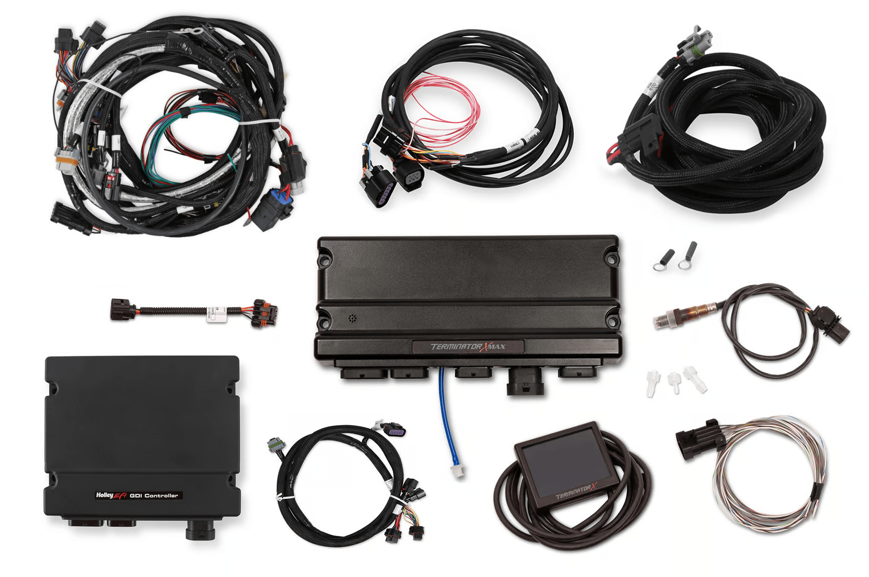 Take control of your GM Gen V LT4, LT1, L83, or L86 engine with Terminator X! Do not settle for a factory ECU with a cumbersome tuning interface when you can have complete control of your engine, self-learning fuel strategies and the proven, race-winning technology of Holley EFI at a budget-friendly price! Terminator X features real-time fuel learn, an integrated 1bar MAP sensor, and four programmable inputs and outputs. The inputs and outputs are ideal for electric fans, boost control solenoids, progressive nitrous control, and much more. Terminator X comes fully loaded with base maps for common LT engine combinations to get you out of the garage and on the road/track fast. The 3.5" touch screen LCD handheld contains an easy to use calibration wizard as well as tuning and gauge display functions. All Gen V LT Terminator X kits will come with an external Gasoline Direct Injection Controller, which enables the end user to control and tune, factory injectors, GM Gen V LT Variable Valve Timing (VVT), and factory fuel pumps. Also included is Holley EFI's industry-leading, easy to use software suite that allows full laptop access for advanced users. Whether you are building, an LT swapped budget beater or a boosted racecar, Terminator X has the features and technology you need at a price that will not break the bank!