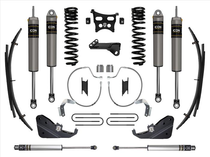 This ICON Vehicle Dynamics 4.5Ó suspension system is a great way to lift your 4WD 2023 Ford F-250/F-350 Super Duty while drastically improving ride quality and performance and allowing fitment of larger, more aggressive wheel and tire combinations. This Stage 3 system is perfect for on-road and towing use, as well as off-road use like job site duty, washboard gravel roads, and general off-road adventures.