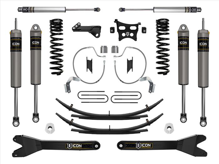 This ICON Vehicle Dynamics 4.5Ó suspension system is a great way to lift your 4WD 2023 Ford F-250/F-350 Super Duty while drastically improving ride quality and performance and allowing fitment of larger, more aggressive wheel and tire combinations. This Stage 3 system is perfect for on-road and towing use, as well as job site duty, washboard gravel roads, and general off-road adventures.