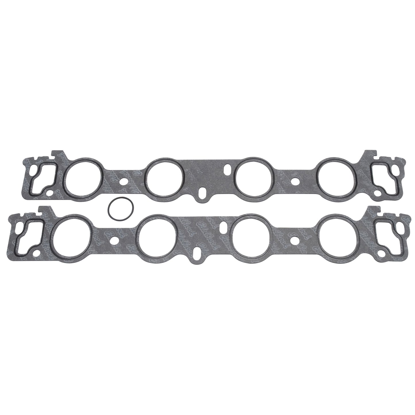Edelbrock part #7223 Intake Gaskets for 1968-1987 429-460 Big-Block Fords allow for optimum flow and performance. Any gasket can create a seal, but a good gasket can do it with less clamping force, and for a longer period of time. The new MP-2N Micropore technology does not use solvents making our gaskets environmentally friendly. Impervious to most chemicals, this synthetic fiber composite provides a high recovery under load. This means that when compressed, the gasket will conform to any imperfections on the sealing surface even using lower flange pressures. A nitrile bead around each port opening makes the seal even better.