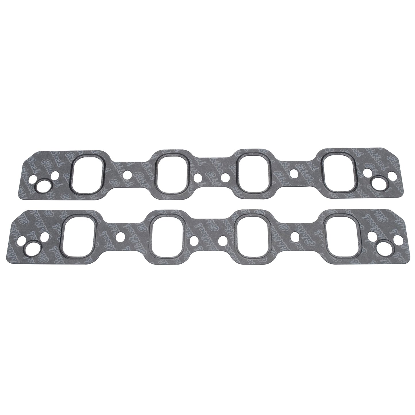 Edelbrock part #7265 Intake Gaskets for 302 E-Boss & 351W E-Boss (Clevor) Conversions allow for optimum flow and performance. Any gasket can create a seal, but a good gasket can do it with less clamping force, and for a longer period of time. The new MP-2N Micropore technology does not use solvents making our gaskets environmentally friendly. Impervious to most chemicals, this synthetic fiber composite provides a high recovery under load. This means that when compressed, the gasket will conform to any imperfections on the sealing surface even using lower flange pressures. A nitrile bead around each port opening makes the seal even better.