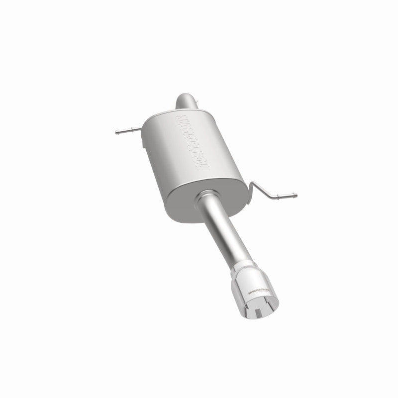 The MagnaFlow 2011-2014 Mazda 2 Street Series Axle-Back Performance Exhaust System 15555 brings enhanced engine sound and dyno-proven performance to your 1.5L 2011-2014 Mazda 2 with a healthy helping of our deep, resonant signature exhaust note at Moderate exterior and Mild interior sound levels. Thanks to its durable, corrosion resistant stainless steel design, this Mazda 2 exhaust system will handle whatever tarmac you decide to leave your mark on. This performance exhaust kit features an axle-back layout designed to replace your Mazda 2's exhaust system from near the rear axle on back. With its fast-flowing, mandrel bent 2.25in. main piping and 1 Straight-Through mufflers ending in a Single Straight Passenger Side Rear exit with 3.5in. Polished Welded-On Double Wall Angle Cut Folded Edge tips, your ride will be sounding as awesome as it looks. Extensive 3D scanning during development has resulted in a direct-fit design that you can easily install yourself. 15555 is produced using CNC precision robotic manufacturing techniques and is backed by MagnaFlow's 1-year limited finish warranty and limited lifetime construction warranty.