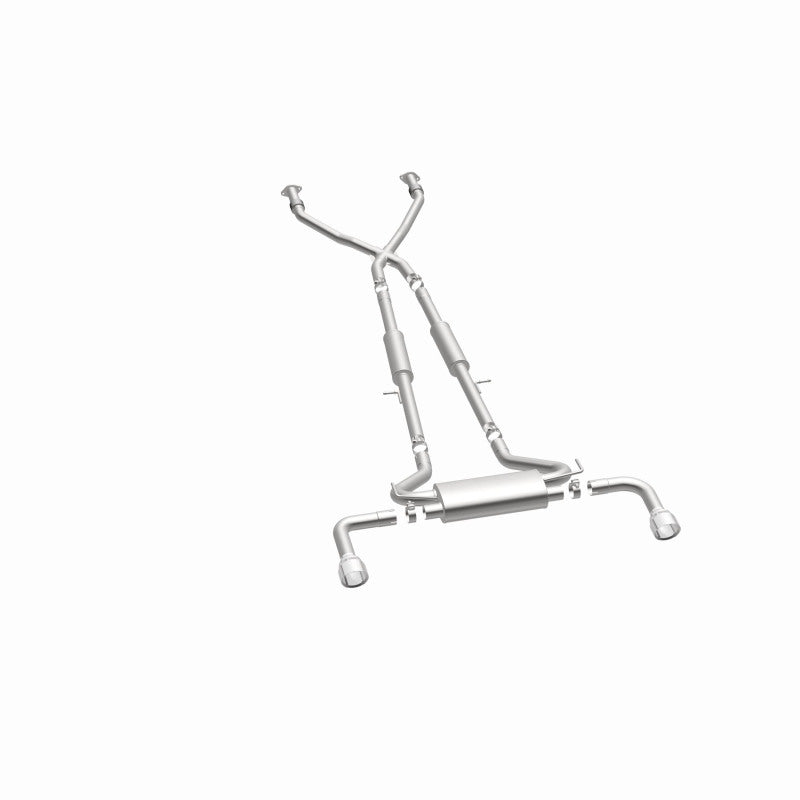 The MagnaFlow 2014-2024 INFINITI Q50 Street Series Cat-Back Performance Exhaust System 15310 brings out the personality of your 3.0L, 3.5L, 3.7L 2014-2023 INFINITI Q50 with our signature resonant, powerful engine tone and dyno-proven performance. Thanks to its fast-flowing, mandrel bent 2.5in. main piping and 3 Straight-Through mufflers ending in a Dual Split Rear exit with 4.5in. Polished Welded-On Double Wall Angle Cut Folded Edge tips, this INFINITI Q50 exhaust kit has the performance chops to match its sporty sound and appearance. Upgrade your ride to the next level with an exhaust that has the pipes to put other INFINITI Q50's to shame. With this system your vehicle will be producing Moderate exterior and Mild interior sound levels while leaving other cars and trucks feeling envious at every stoplight. Exhaust kit 15310 features a cat-back layout that replaces your ride's stock exhaust components from near the catalytic converter on back. Extensive 3D scanning during development has resulted in a direct-fit design that you can easily install yourself. 15310 is produced using CNC precision robotic manufacturing techniques and is backed by MagnaFlow's 1-year limited finish warranty and limited lifetime construction warranty.