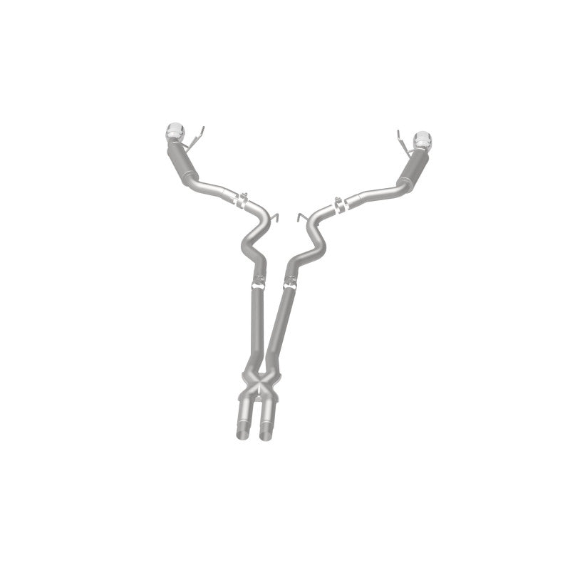 The MagnaFlow 2015-2017 Ford Mustang Competition Series Cat-Back Performance Exhaust System 19099 brings an aggressive, attention-grabbing edge to the deep resonant exhaust note we're so well known for. This exhaust kit is designed to enhance your 3.7L 2015-2017 Ford Mustang with dyno-proven performance made possible thanks to fast-flowing mandrel bent 2.5in. main piping and 2 Straight-Through mufflers ending in a Dual Split Rear exit with 4.5in. Polished Welded-On Double Wall Angle Cut Folded Edge tips featuring a sporty finish. The exhaust system's cat-back layout replaces your ride's exhaust system from near the catalytic converter on back. Exhaust system 19099 is engineered to make your vehicle's engine produce Aggressive exterior and Moderate interior sound levels, befitting its competition-oriented design. 19099's direct-fit design makes installation a breeze thanks to the use of advanced 3D scanning techniques. This performance exhaust system is made of 100% durable and corrosion-resistant stainless steel and produced using CNC precision robotic manufacturing, all backed by MagnaFlow's limited lifetime warranty. Please check to ensure compliance with local noise regulations.