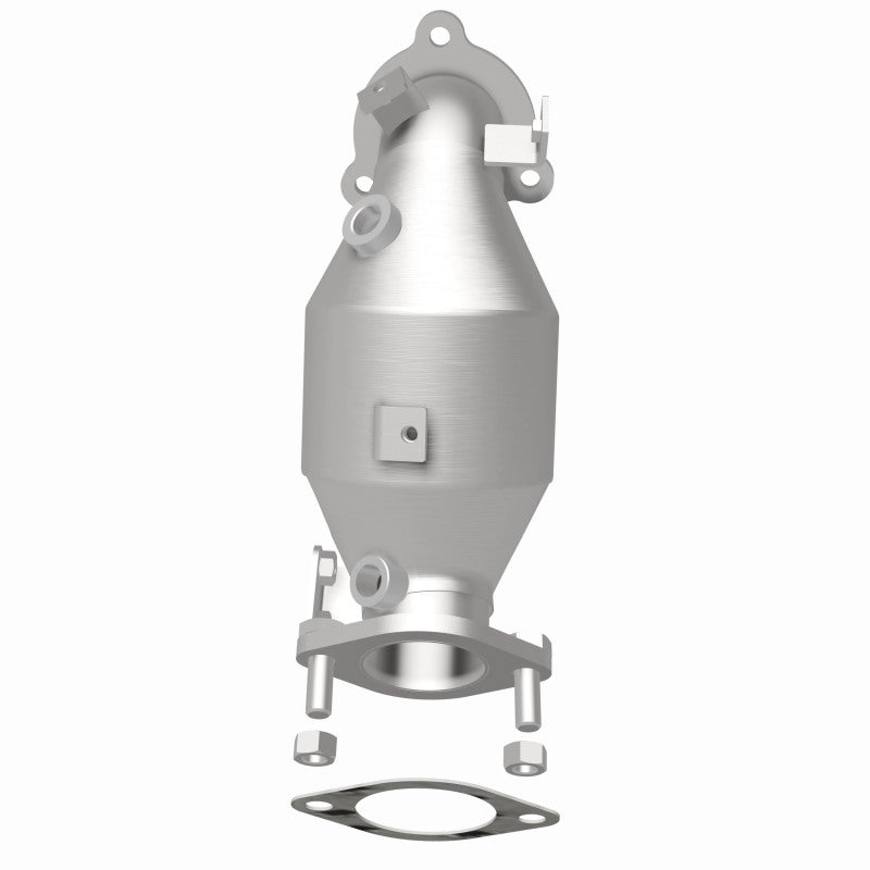 Keep the check engine light off with MagnaFlow OEM Grade Federal/EPA Compliant Direct-Fit Catalytic Converter 49251. With features including free-flowing mandrel-bent tubing and highly corrosion resistant stainless steel construction, easily install this spun body converter yourself using the proper tools, no cutting or welding required. MagnaFlow's state-of-the-art metrology department uses the latest 3D scanning systems during research and development, so you can be confident that your new part will fit and function like the original equipment. By replicating the OE spun body design, the single laser fusion weld greatly reduces the possibility of a leak, and our compact, low-mass design also allows for greater thermal efficiency. This direct-fit catalytic converter is designed specifically for the 2010-2012 Hyundai Genesis Coupe and interchanges with OE parts 28510-2C450 and 28510-2C490. The included gaskets & hardware reduce the possibility of a leaking seal while avoiding the need to reuse corroded factory parts for installation. This replacement part is designed to meet or exceed Federal emissions requirements set forth by the EPA, complying with legal standards for OBDII Federally registered vehicles with California or Federal/EPA Emission systems.