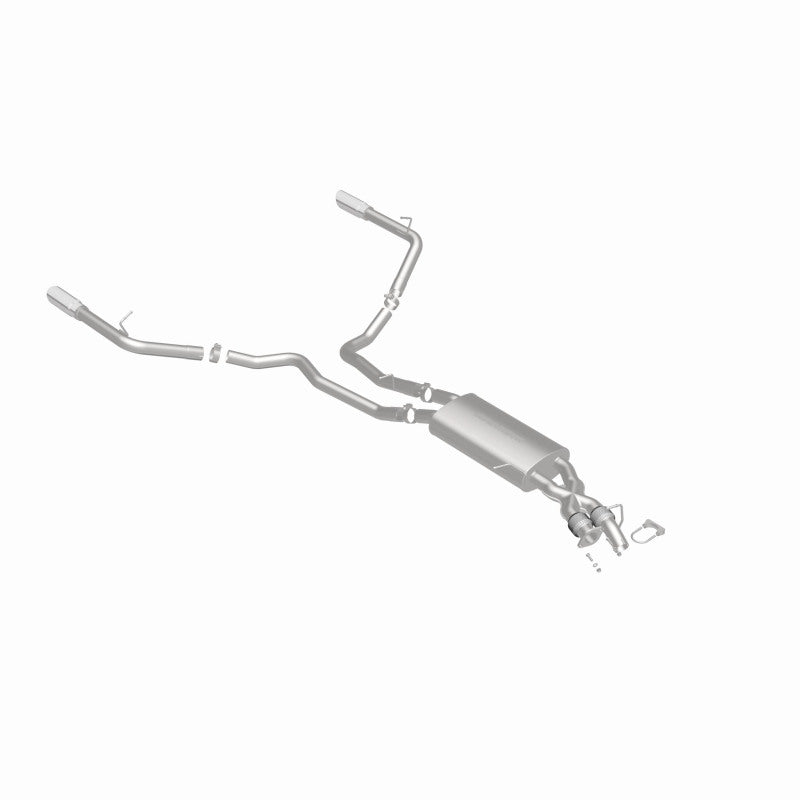 The MagnaFlow 2010-2013 Land Rover Range Rover Sport Touring Series Cat-Back Performance Exhaust System 15579 is the perfect partner for your 5.0L 2010-2013 Land Rover Range Rover Sport to take on a grand tour or a weekend cruise thanks to the powerful, resonant exhaust note and dyno-proven performance it brings to the table. This durable, corrosion resistant stainless steel exhaust kit is engineered to conquer the miles with ease while enhancing your driving experience with Moderate exterior and Mild interior sound levels generated through its fast-flowing, mandrel bent 2.5in. main piping and 1 Straight-Through muffler that terminate in a Dual Split Rear exit with 3.5in. Polished Welded-On Double Wall Angle Cut Folded Edge tips. 15579 features a cat-back layout design to replace your import's stock exhaust components from the catalytic converter on back. This Land Rover Range Rover Sport exhaust system is compatible with 2010-2013 engines. The use of extensive 3D scans made during the development process has resulted in an easy-to-install, direct-fit design that fits your Land Rover Range Rover Sport like a glove. 15579 is produced using CNC precision robotic manufacturing techniques and is backed by MagnaFlow's limited lifetime construction warranty.