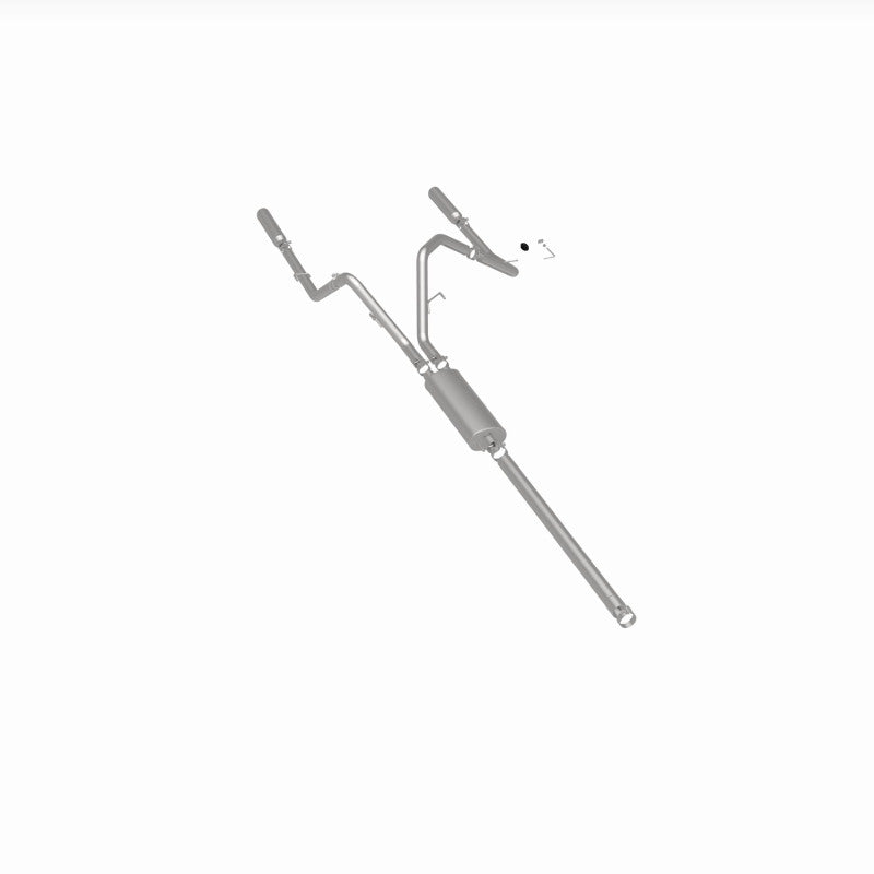 The MagnaFlow 2006-2007 Dodge Ram 1500 Street Series Cat-Back Performance Exhaust System 16700 brings out the personality of your 5.7L 2006-2007 Dodge Ram 1500 with our signature resonant, powerful engine tone and dyno-proven performance. Thanks to its fast-flowing, mandrel bent 3in. main piping and 1 Straight-Through mufflers ending in a Dual Split Rear exit with 3.5in. Polished Clamp-On Single Wall Angle Cut Rolled Edge tips, this Dodge Ram 1500 exhaust kit has the performance chops to match its sporty sound and appearance. Upgrade your ride to the next level with an exhaust that has the pipes to put other Dodge Ram 1500's to shame. With this system your vehicle will be producing Aggressive exterior and Moderate interior sound levels while leaving other cars and trucks feeling envious at every stoplight. Exhaust kit 16700 features a cat-back layout that replaces your ride's stock exhaust components from near the catalytic converter on back. Extensive 3D scanning during development has resulted in a direct-fit design that you can easily install yourself. 16700 is produced using CNC precision robotic manufacturing techniques and is backed by MagnaFlow's 1-year limited finish warranty and limited lifetime construction warranty.