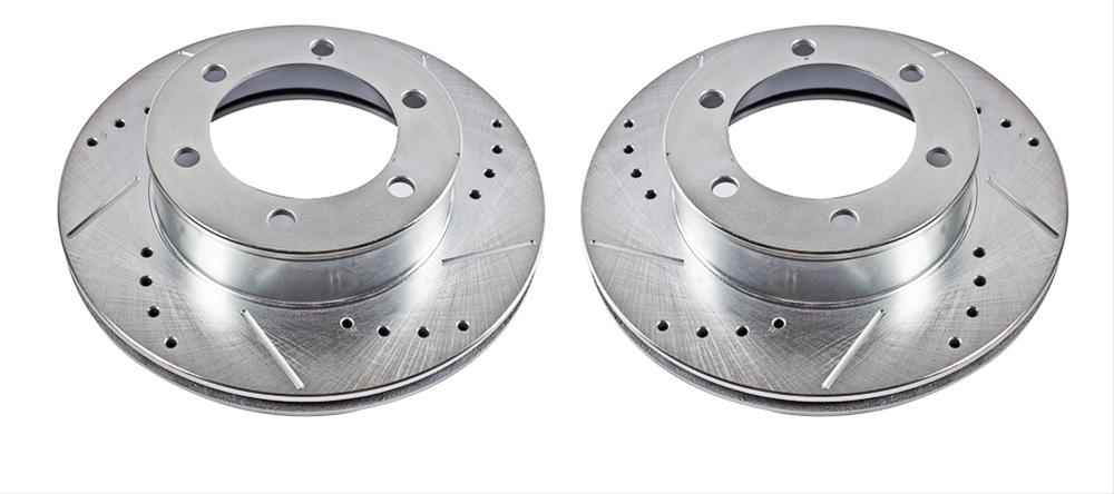 PowerStop Evolution drilled and slotted rotors provide a bolt-on upgrade for improved brake cooling and performance on your car, truck, or SUV. They are precision cross-drilled for maximum cooling and maximum performance during extreme conditions; rounded slots sweep away gas, debris, and moisture to keep a clean friction contact patch on the rotor surface providing smooth, safe braking. Rotors without an integrated bearing are covered in silver zinc dichromate plating resists rust and corrosion. With the direct OE fit of PowerStop Evolution drilled and slotted rotors, upgrading the looks and stopping power of your vehicle has never been easier.