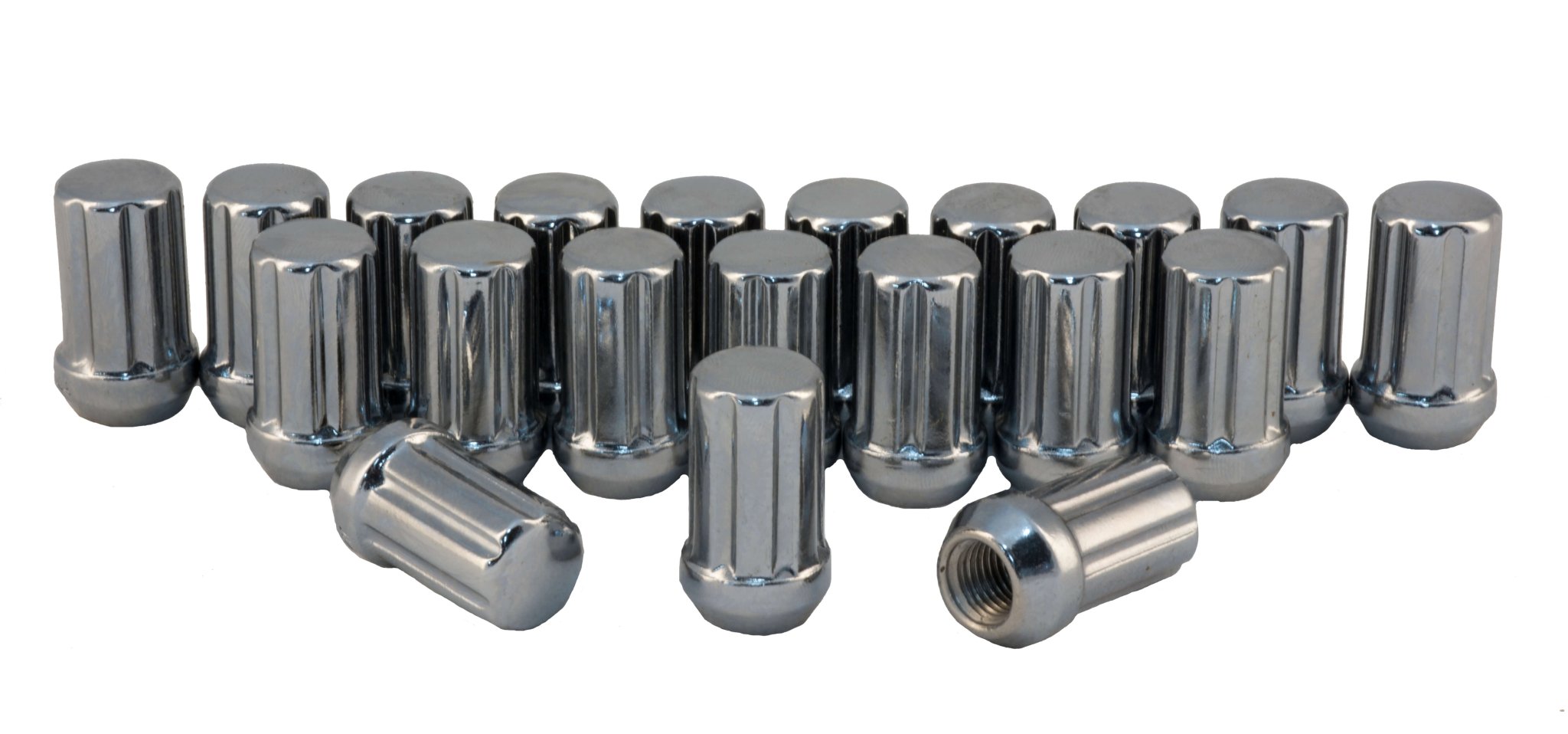 Chrome Spline Drive Lugs provide better clearance for recessed lug type wheels as well as security from theft. Made from quality carbon steel and each piece meets or exceeds industry standards. 7 spline design. Set of 20. Used with key part number C7301 (Sold separately).