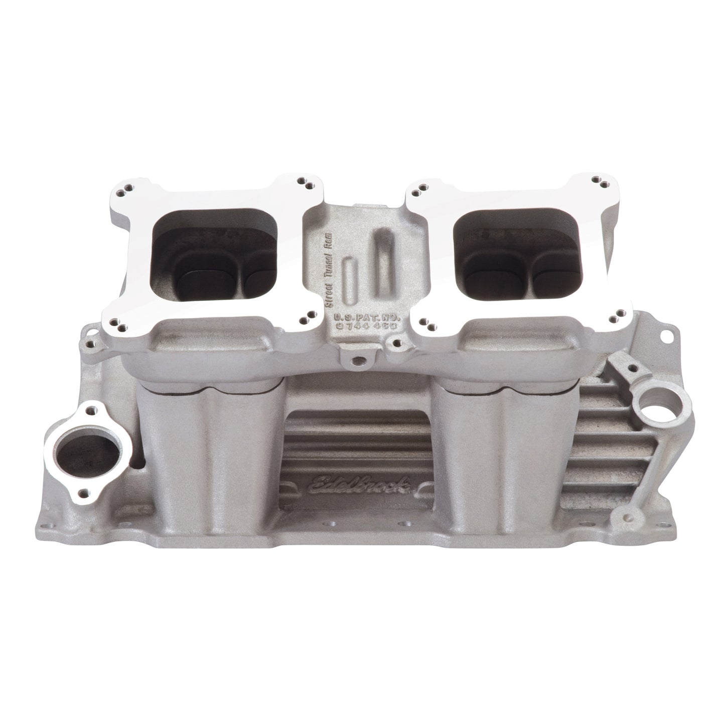 Edelbrock part #7110 Street Tunnel Ram intake manifold is designed for 302-327-350-400 c.i.d. small-block Chevy V8's operating below 7500 rpm where low-end torque is not a prime factor. Great for engines with slightly modified heads. Will not fit 1987 and later cast iron heads. Use with cam kit #5002 for low-end torque or cam kit #7102 for top-end power.