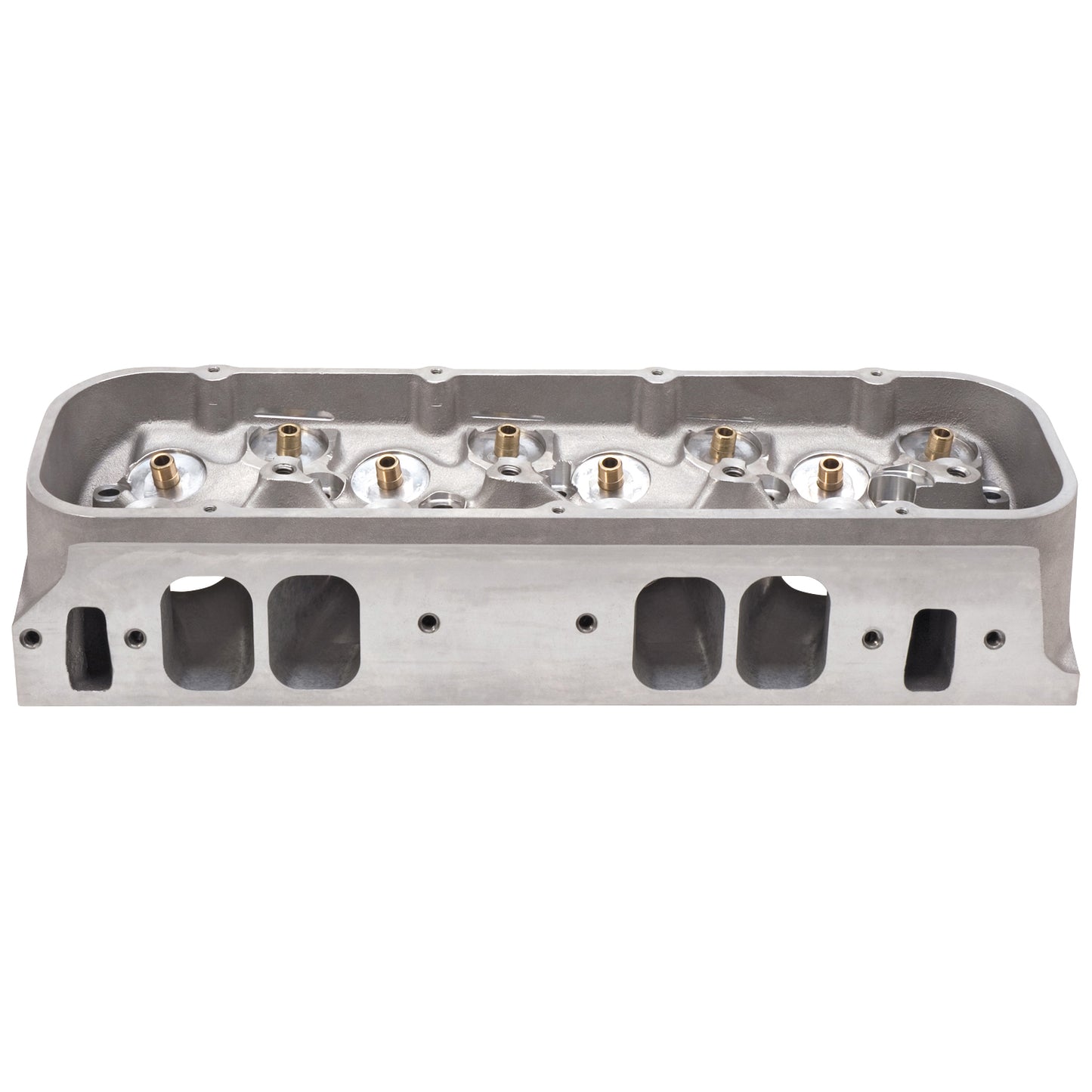 Edelbrock and Pat Musi Performance have combined efforts to produce the finest standard intake port location big-block Chevy head available. The Edelbrock #61419 Victor 24deg CNC Bare cylinder head features an extra thick deck and extra material in the spring pockets for a heavy-duty casting that can be used with high-lift cam and heavy spring combinations. Edelbrock equips the complete cylinder head with Manley dual-spring valve springs and titanium retainers good for up to .880" lift. The port designs are large oval (367 lh / 377 rh) that produce impressive flow - out-of-the-box. The exhaust port exits are raised .750" to greatly improve exhaust flow and power. Off the shelf large oval-port intakes are available through Edelbrock.